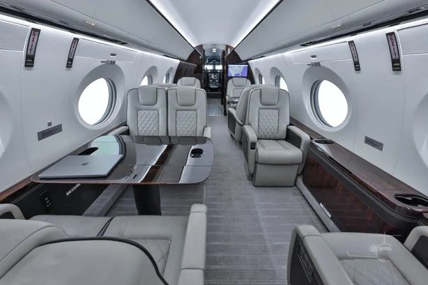 The jet is known for advanced avionics, long-range capability, high speed, and a comfortable cabin designed for productivity and secure communication.